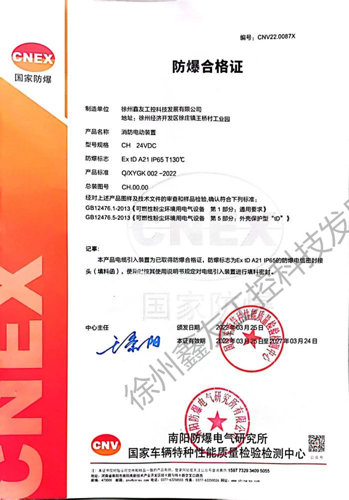 氣體防爆證書(shū)2020.8.12-2025.8.11